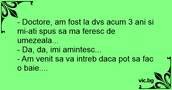 - Doctore, am fost la dvs acum 3 ani si mi-ati spus sa ma feresc de umezeala...