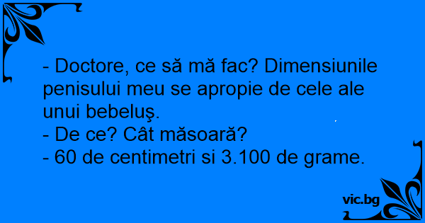 - Doctore, ce să mă fac? Dimensiunile penisului meu se apropie de cele ale unui bebeluş.