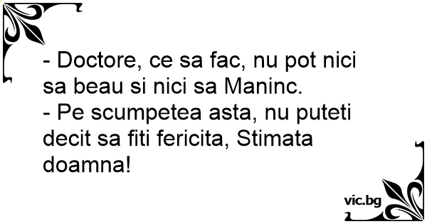 - Doctore, ce sa fac, nu рот nici sa beau si nici sa Maninc.