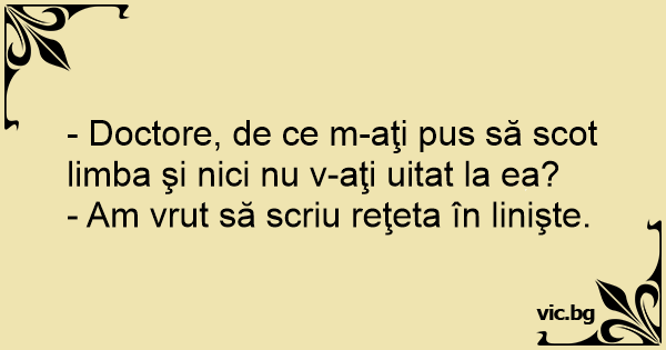 - Doctore, de ce m-aţi pus să scot limba şi nici nu v-aţi uitat la ea?