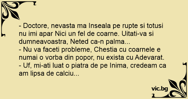 - Uf, mi-ati luat o piatra de pe Inima, credeam ca am lipsa de calciu...