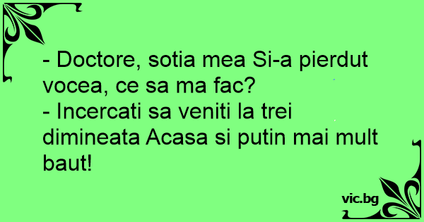 - Doctore, sotia mea Si-a pierdut vocea, ce sa ma fac?