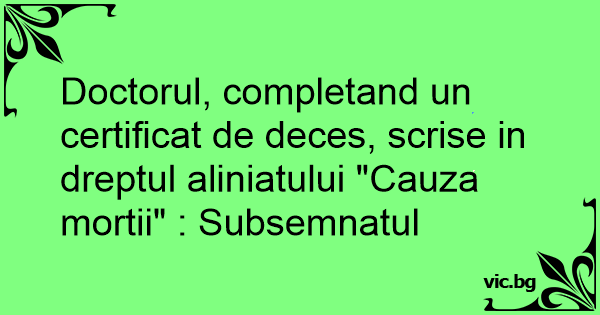 Doctorul, completand un certificat de deces, scrise in dreptul aliniatului "Cauza mortii" : Subsemnatul