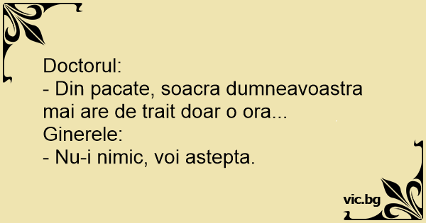 - Din pacate, soacra dumneavoastra mai are de trait doar o ora...