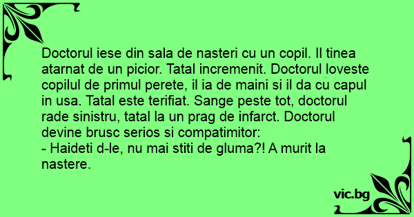 - Haideti d-le, nu mai stiti de gluma?! A murit la nastere.
