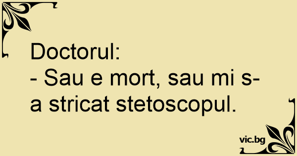 - Sau e mort, sau mi s-a stricat stetoscopul.