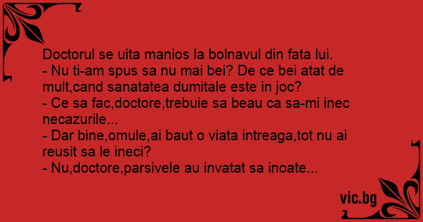 - Ce sa fac,doctore,trebuie sa beau ca sa-mi inec necazurile...
