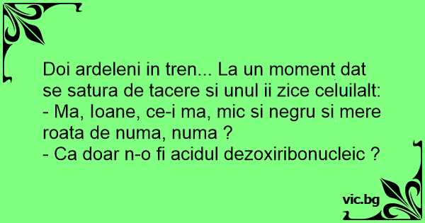Doi ardeleni in tren... La un moment dat se satura de tacere si unul ii zice celuilalt:
