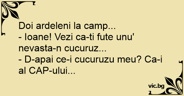 - Ioane! Vezi ca-ti fute unu' nevasta-n cucuruz...