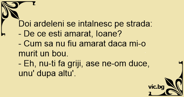 Doi ardeleni se intalnesc pe strada: