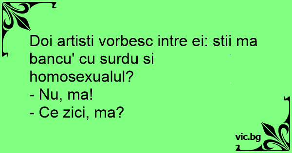 Doi artisti vorbesc intre ei: stii ma bancu' cu surdu si homosexualul?