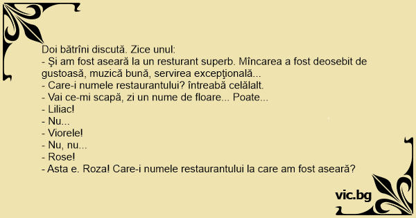 - Asta e. Roza! Care-i numele restaurantului la care am fost aseară?