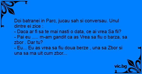 Doi batranei in Parc, jucau sah si conversau. Unul dintre ei zice :