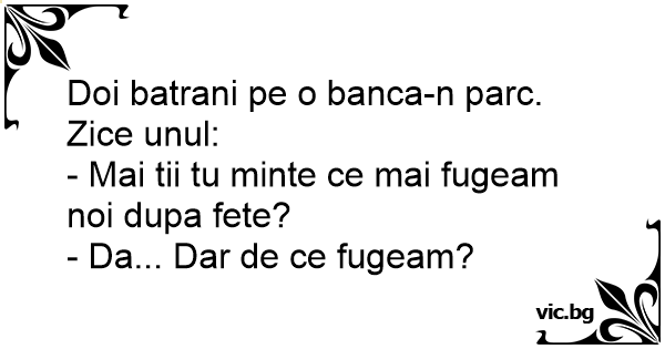Doi batrani pe o banca-n parc. Zice unul: