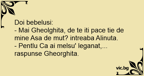 - Pentlu Ca ai melsu' leganat,... raspunse Gheorghita.