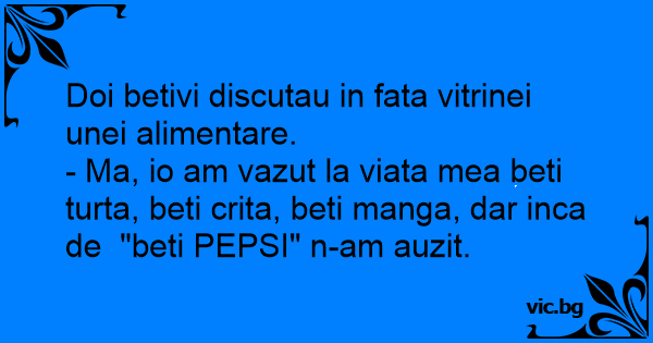 - Ma, io am vazut la viata mea beti turta, beti crita, beti manga, dar inca de "beti PEPSI" n-am auzit.