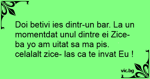 Doi betivi ies dintr-un bar. La un momentdat unul dintre ei Zice-ba yo am uitat sa ma pis. celalalt zice- las ca te invat Eu !