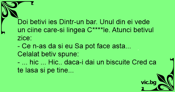 Doi betivi ies Dintr-un bar. Unul din ei vede un ciine care-si lingea C****le. Atunci betivul zice: