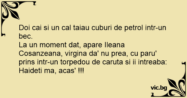 La un moment dat, apare Ileana Cosanzeana, virgina da' nu prea, cu paru' prins intr-un torpedou de caruta si ii intreaba: