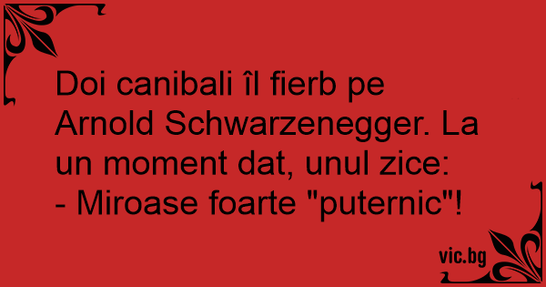 Doi canibali îl fierb pe Arnold Schwarzenegger. La un moment dat, unul zice: