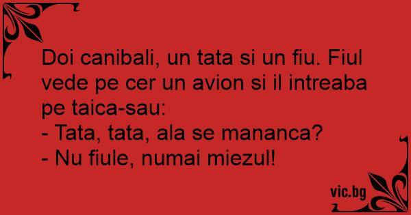 Doi canibali, un tata si un fiu. Fiul vede pe cer un avion si il intreaba pe taica-sau: