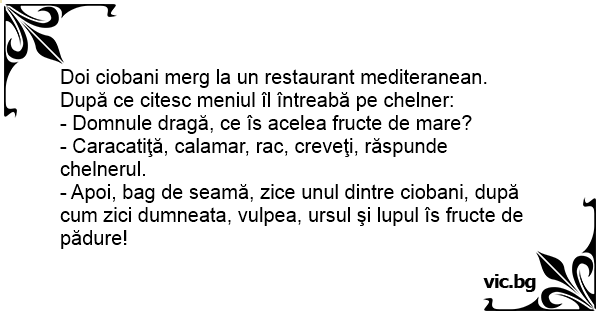 Doi ciobani merg la un restaurant mediteranean. După ce citesc meniul îl întreabă pe chelner: