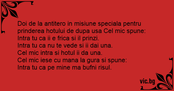 Doi de la antitero in misiune speciala pentru prinderea hotului de dupa usa Cel mic spune: