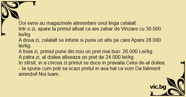 Doi evrei au magazinele alimentare unul linga celalalt.