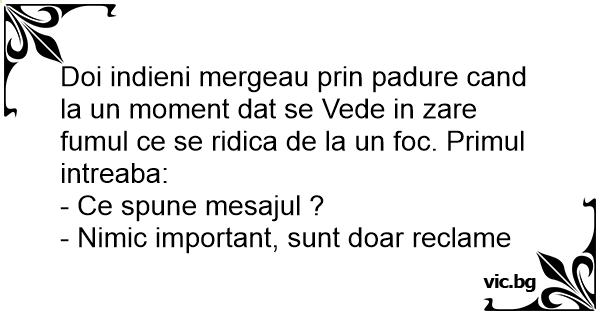 Doi indieni mergeau prin padure cand la un moment dat se Vede in zare fumul ce se ridica de la un foc. Primul intreaba: