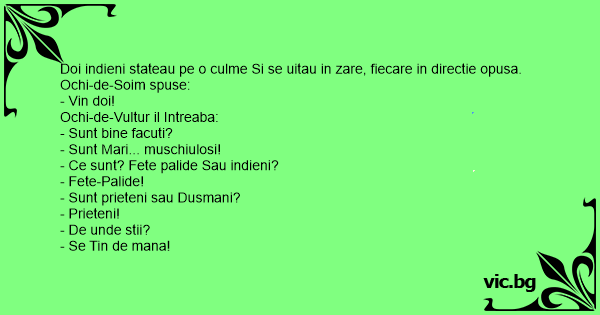 Doi indieni stateau pe o culme Si se uitau in zare, fiecare in directie opusa.