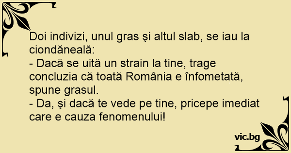 - Dacă se uită un strain la tine, trage concluzia că toată România e înfometată, spune grasul.