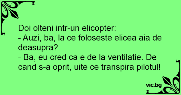 - Ba, eu cred ca e de la ventilatie. De cand s-a oprit, uite ce transpira pilotul!