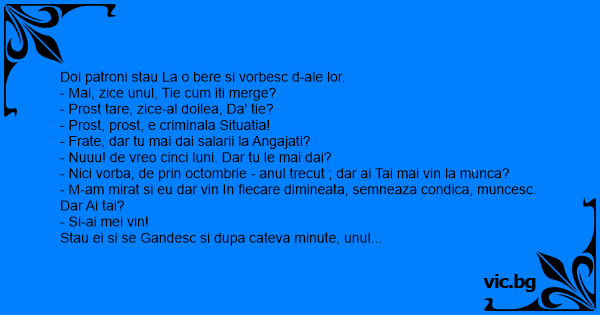 Doi patroni stau La o bere si vorbesc d-ale lor.