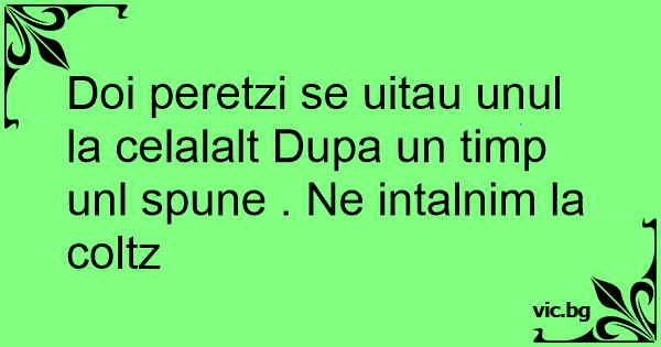Doi peretzi se uitau unul la celalalt Dupa un timp unl spune . Ne intalnim la coltz