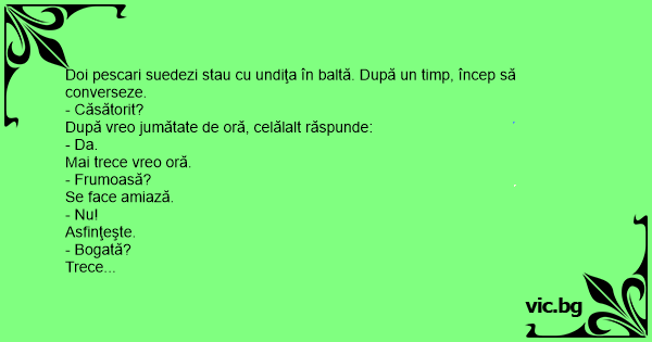 Doi pescari suedezi stau cu undiţa în baltă. După un timp, încep să converseze.