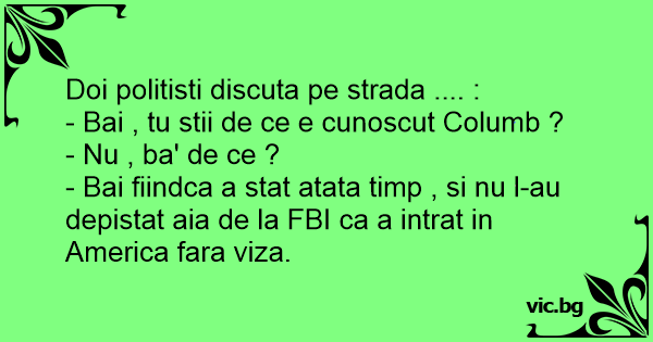 - Bai fiindca a stat atata timp , si nu l-au depistat aia de la FBI ca a intrat in America fara viza.