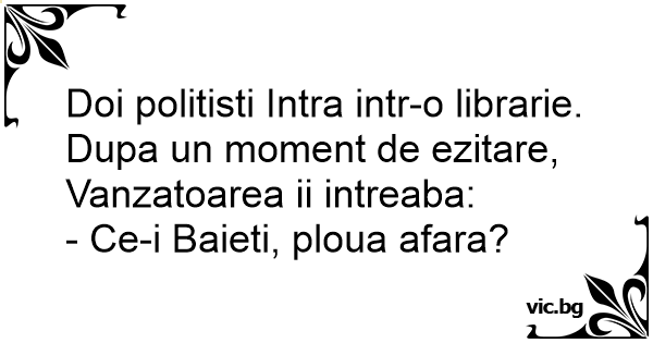 Doi politisti Intra intr-o librarie. Dupa un moment de ezitare, Vanzatoarea ii intreaba: