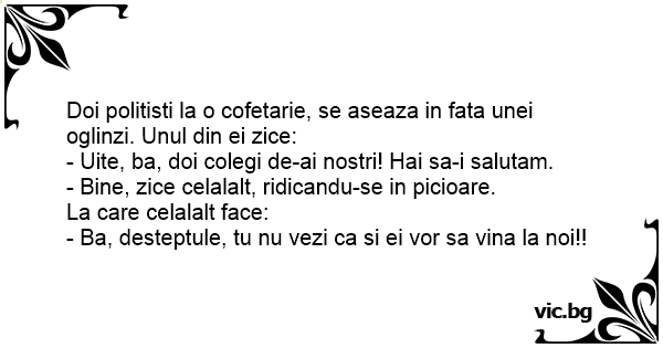 Doi politisti la o cofetarie, se aseaza in fata unei oglinzi. Unul din ei zice: