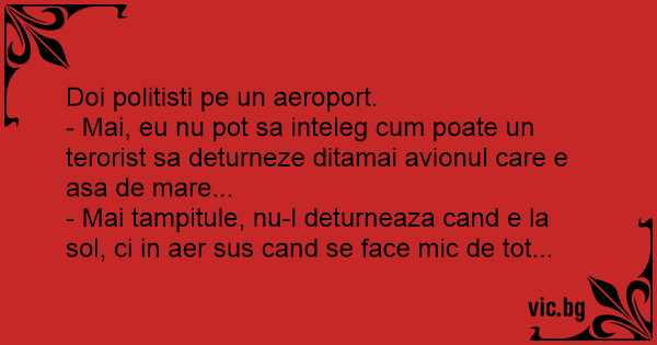 - Mai, eu nu рот sa inteleg сuм poate un terorist sa deturneze ditamai avionul care e asa de mare...