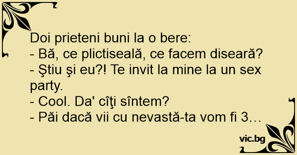 - Ştiu şi eu?! Te invit la mine la un sеx party.