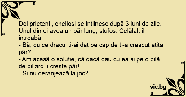 - Am acasã o solutie, cã dacã dau cu ea si pe o bilã de biliard ii creste pãr!
