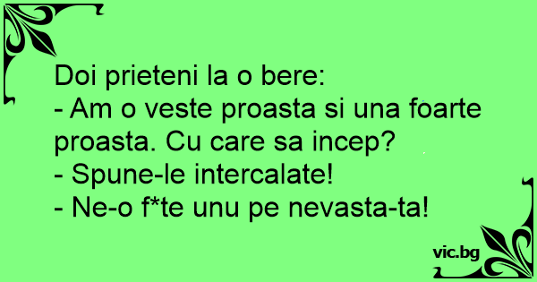 - Am o veste proasta si una foarte proasta. Cu care sa incep?