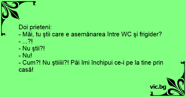 - Măi, tu ştii care e asemănarea între WC şi frigider?