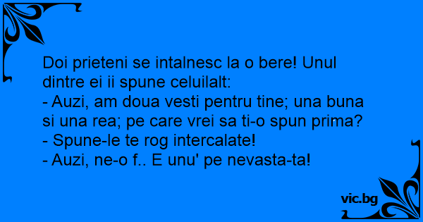Doi prieteni se intalnesc la o bere! Unul dintre ei ii spune celuilalt: