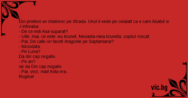 Doi prieteni se intalnesc pe Strada. Unul il vede pe celalalt ca e cam Abatut si-l intreaba: