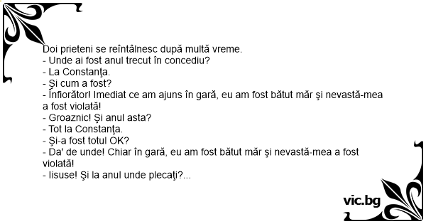 - Da' de unde! Chiar în gară, eu am fost bătut măr şi nevastă-mea a fost violată!