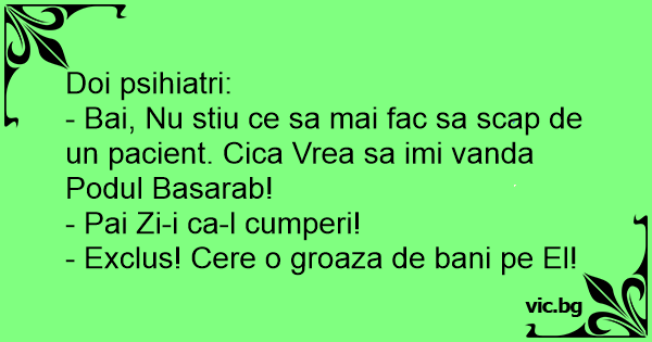 - Bai, Nu stiu ce sa mai fac sa scap de un pacient. Cica Vrea sa imi vanda Podul Basarab!