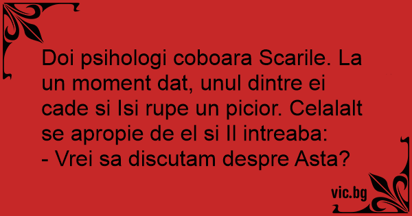 Doi psihologi coboara Scarile. La un moment dat, unul dintre ei cade si Isi rupe un picior. Celalalt se apropie de el si Il intreaba: