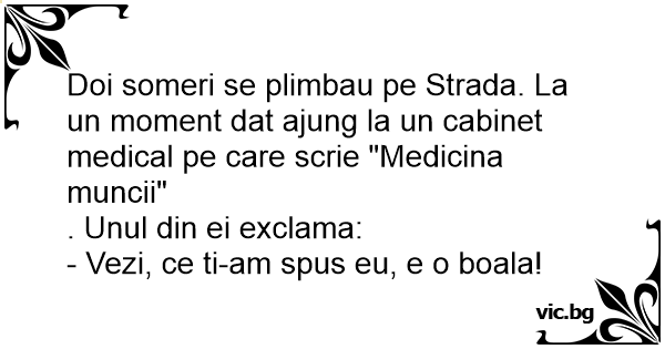Doi someri se plimbau pe Strada. La un moment dat ajung la un cabinet medical pe care scrie "Medicina muncii"