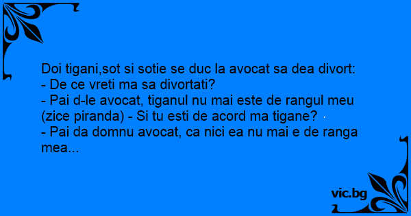 - Pai d-le avocat, tiganul nu mai este de rangul meu(zice piranda) - Si tu еsтi de acord ma tigane?